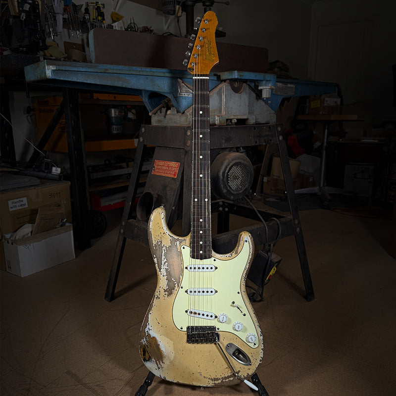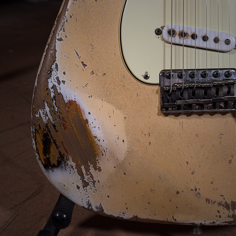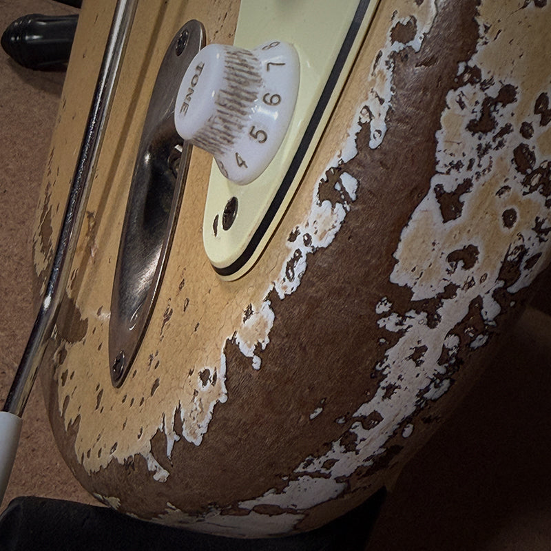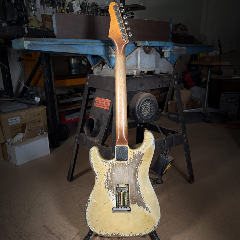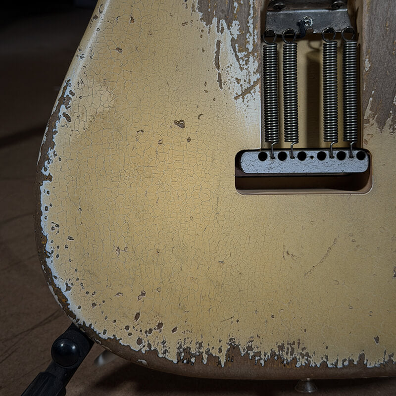 All hardware is high‑quality Gotoh, meticulously hand‑aged in our Port Macquarie workshop alongside the plastics, screws, and pickup covers. Each guitar receives extensive individual attention to achieve its own distinct character. Rather than direct replicas of vintage instruments, we view these guitars as standalone artworks—true to their inspiration, yet unique in their identity.